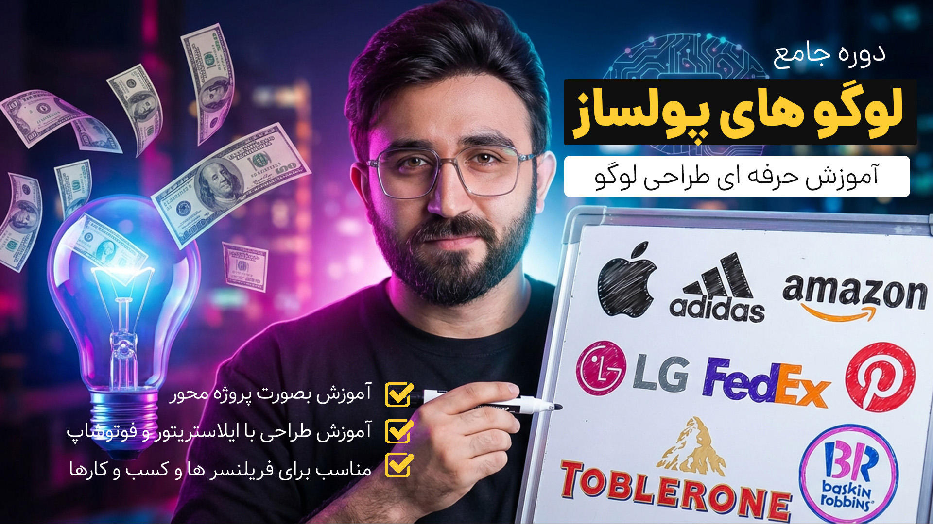 اولین دوره آموزشی وی ، دوره لوگو های پولساز بود که با 10 هزار هنرجو جزو بهترین دوره های آموزشی طراحی لوگو